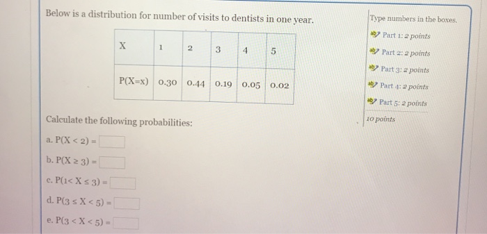 Solved Type Numbers In The Boxes Below Is A Distribution Part 3 Gone To The Dentist